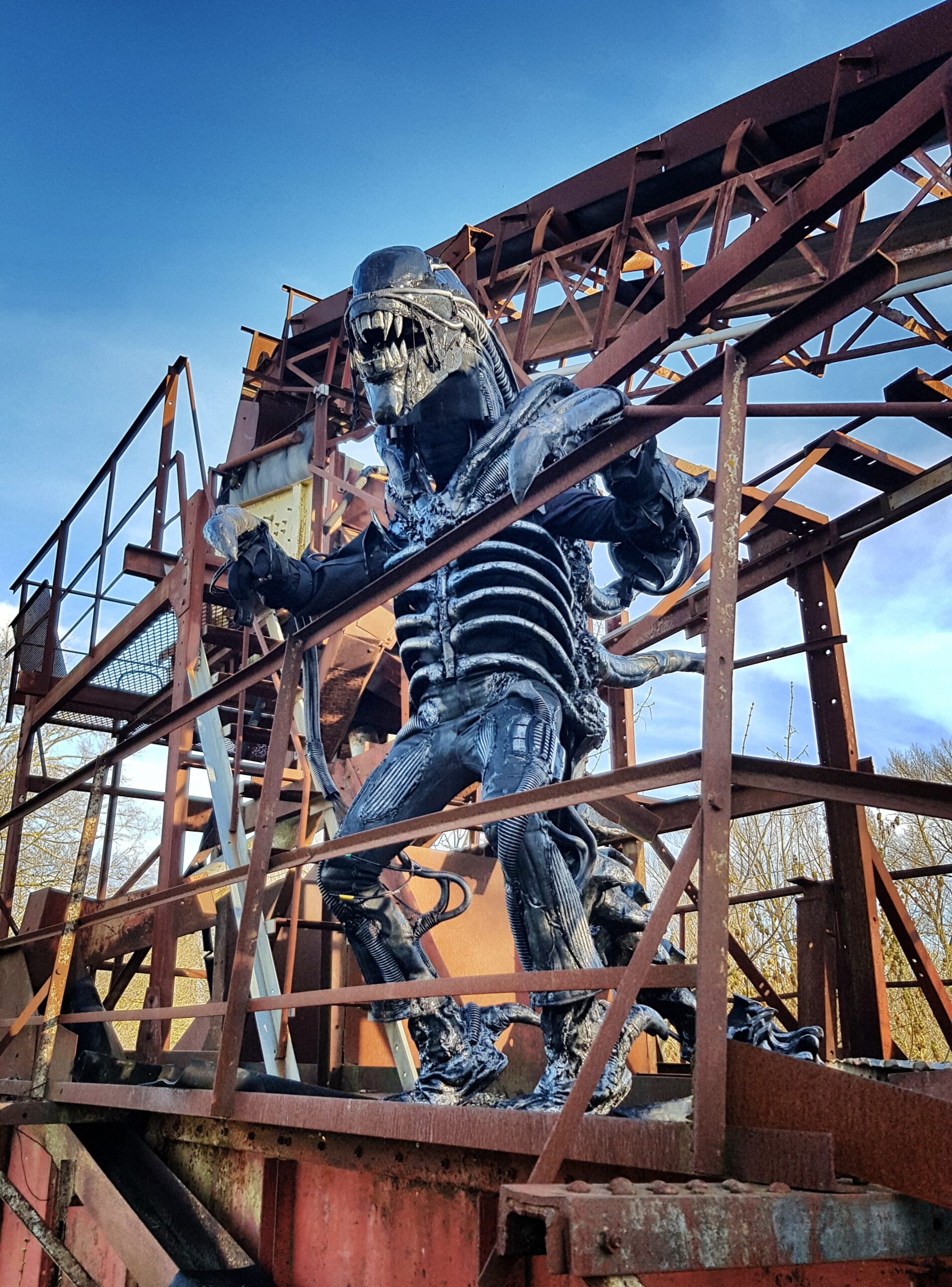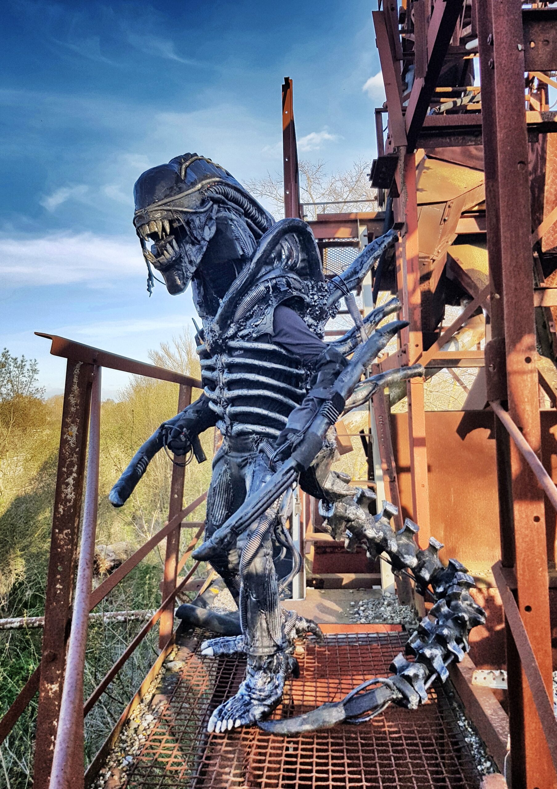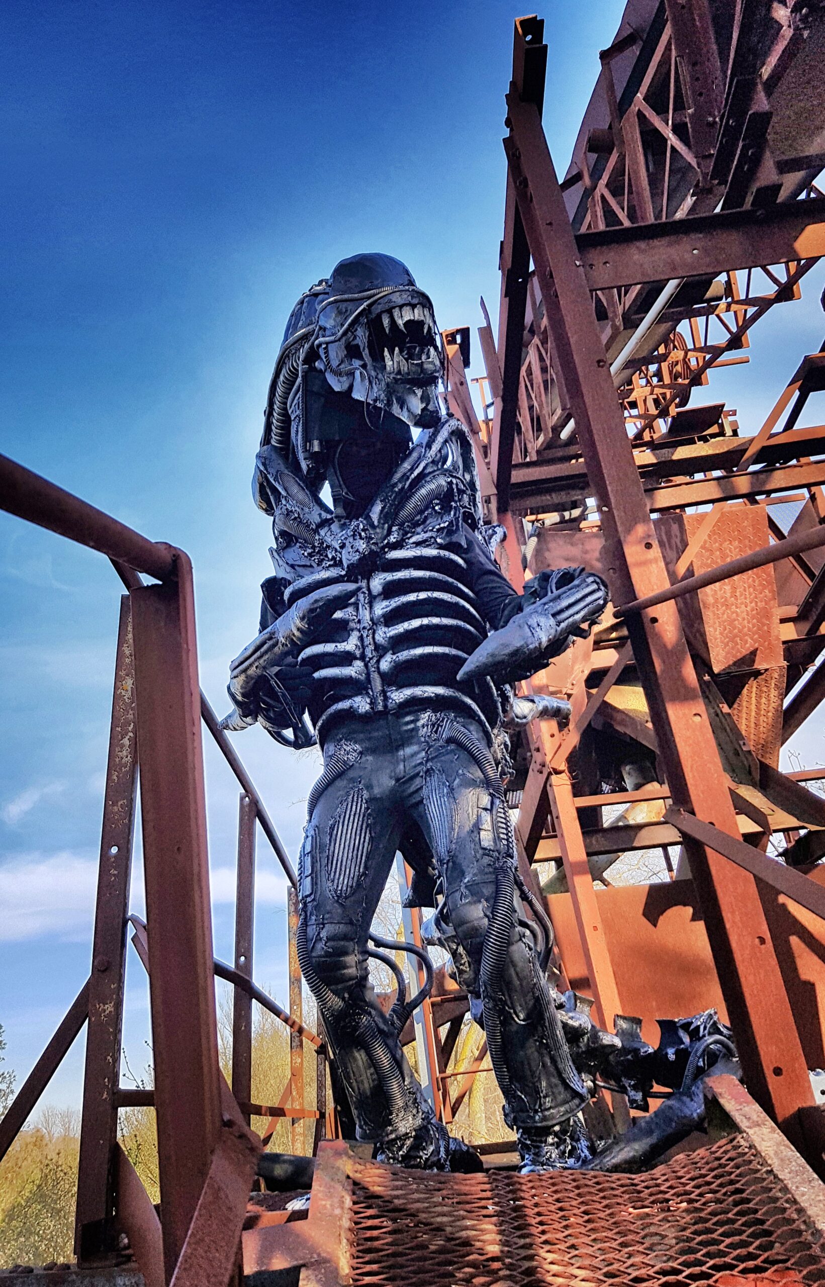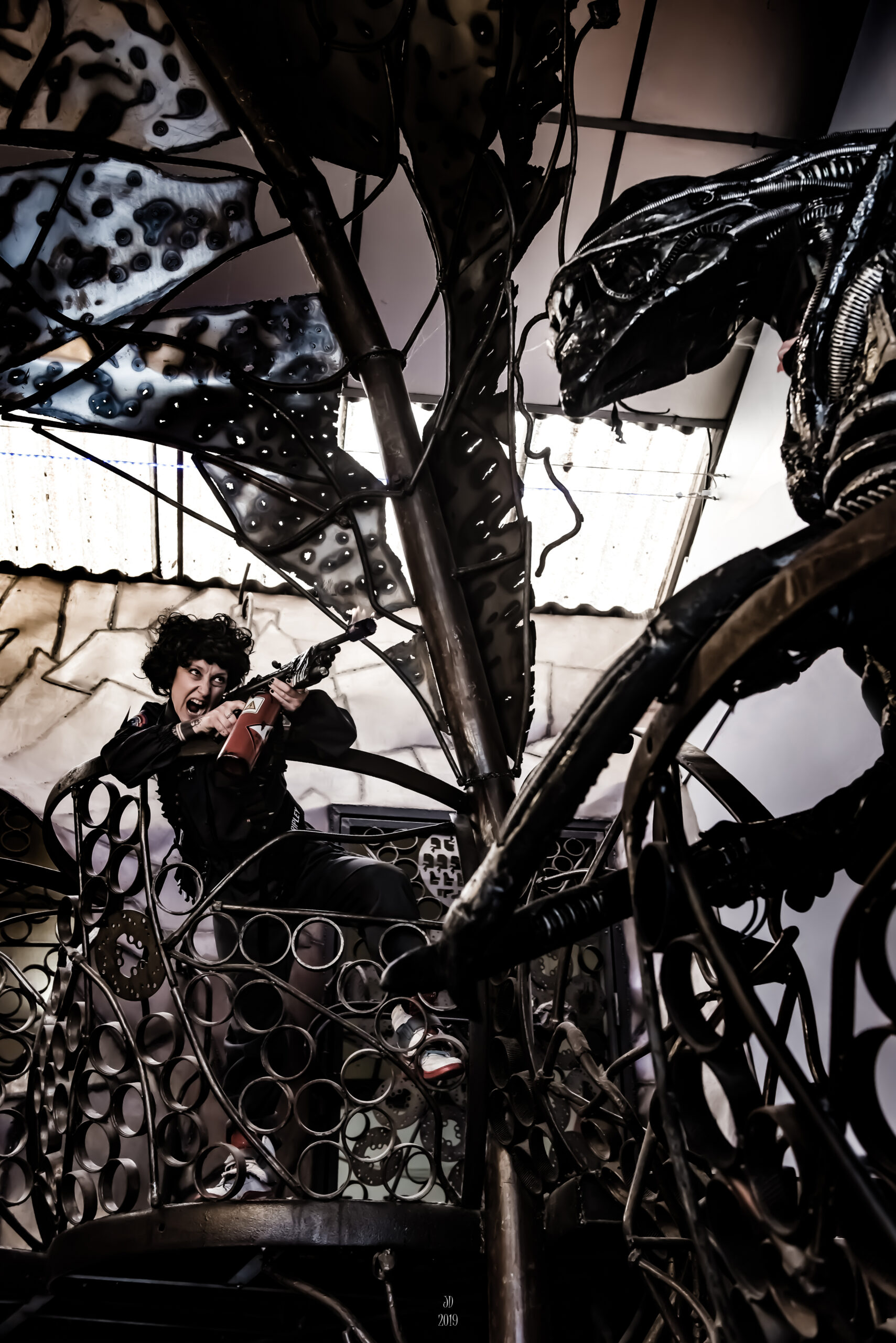 Alien & Ripley proposent une performance hybride entre spectacle déambulatoire, cosplay et arts du feu. L’exosquelette Alien – conçu comme une sculpture articulée – impressionne par sa présence et son réalisme. Il se déplace, grogne, ouvre sa mâchoire et crée une véritable atmosphère cinématographique. Ripley, quant à elle, offre un numéro de feu saisissant qui illumine cette confrontation iconique.