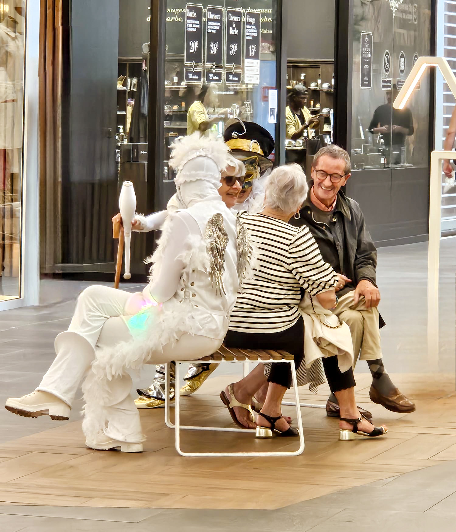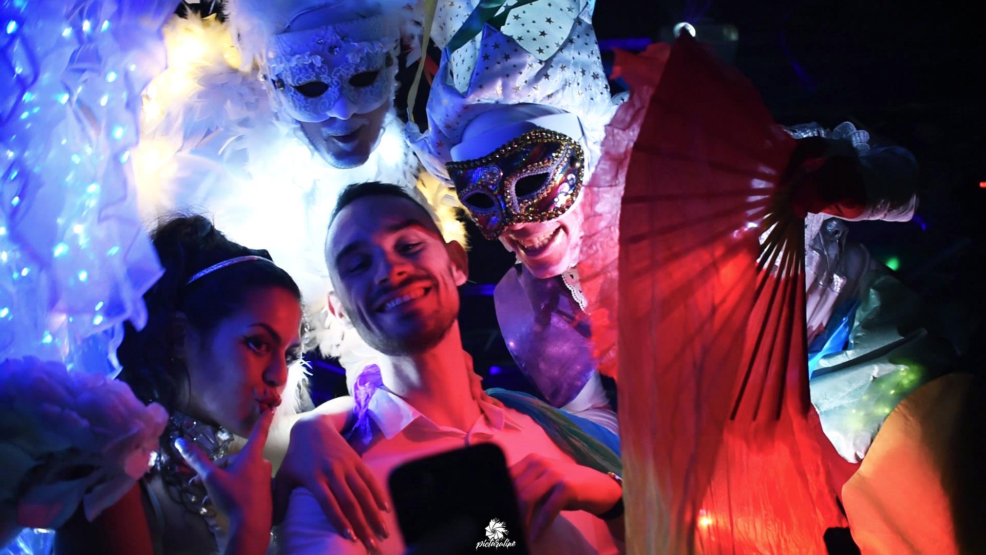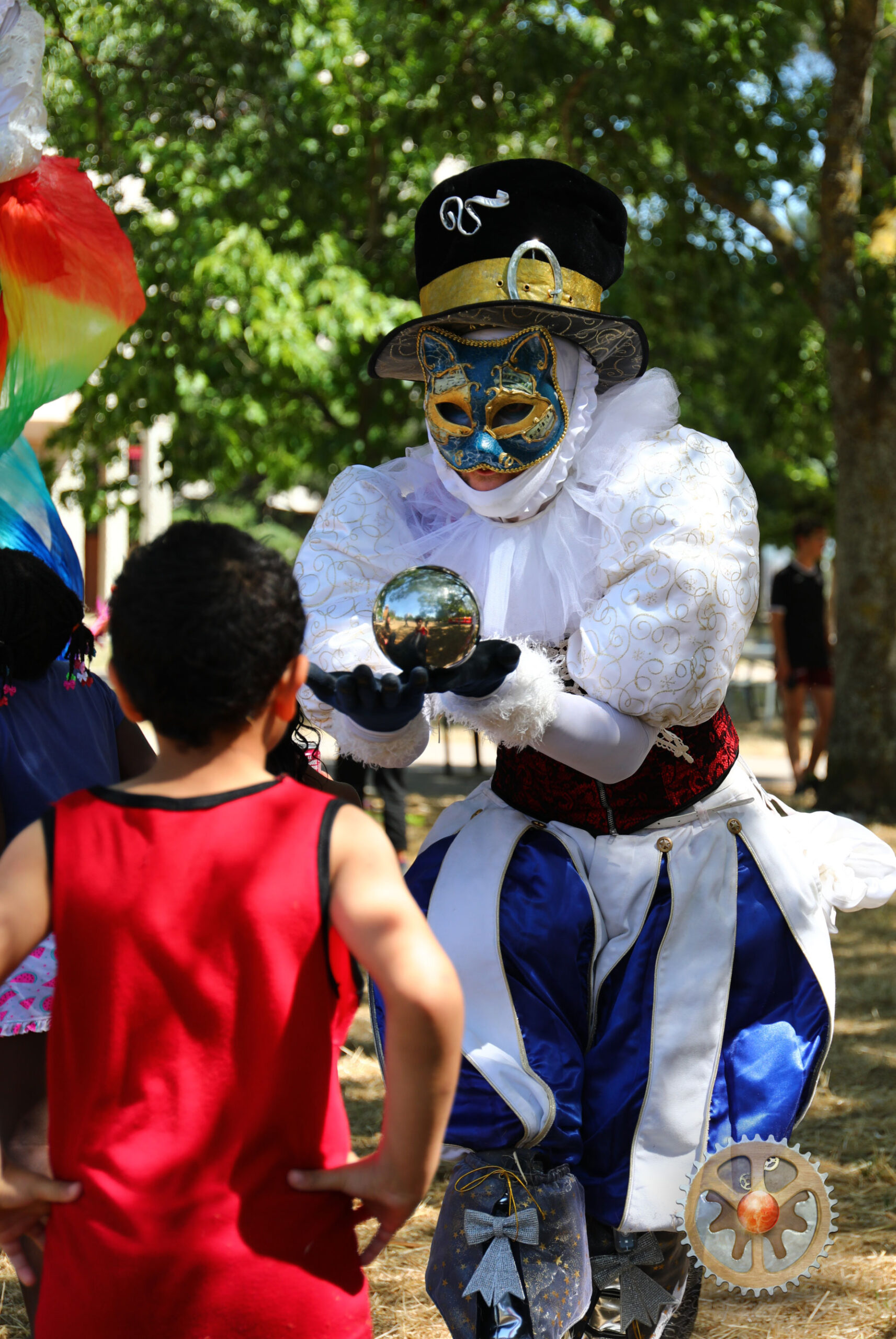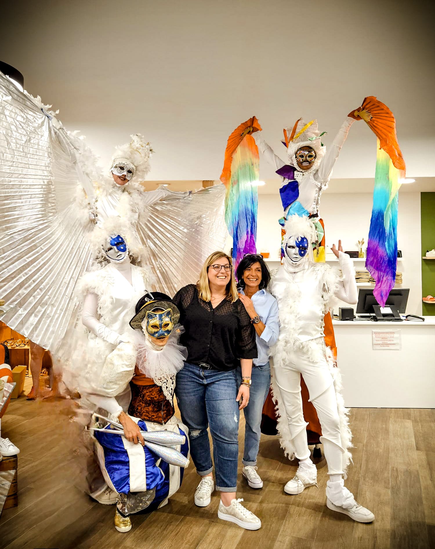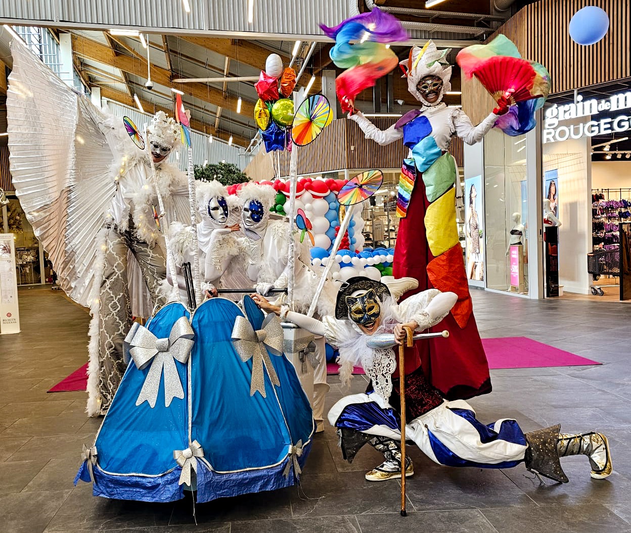 Rempli de joie et de couleurs, l’Homme Arc-en-Ciel est un échassier sauteur et danseur pas comme les autres. Accompagnées de ses Anges bienveillants, deux siamoises envoûtantes, jongleuses et bulleuses, il vous guide dans une vague de douceur, de pureté et d’émerveillement.