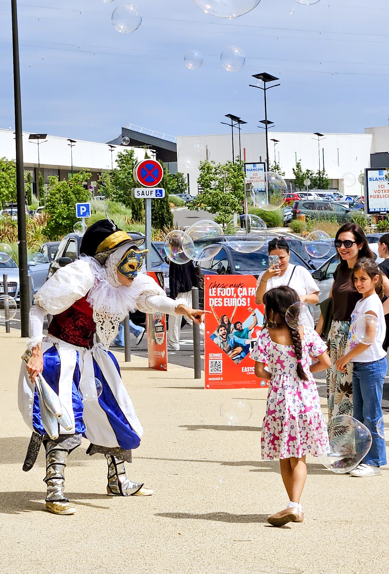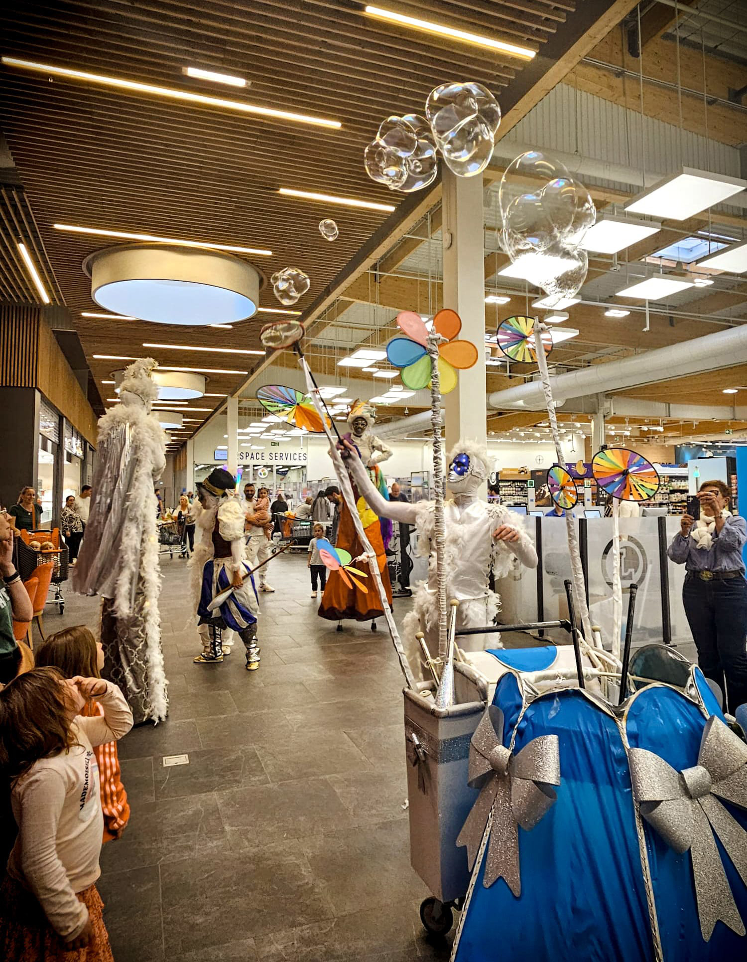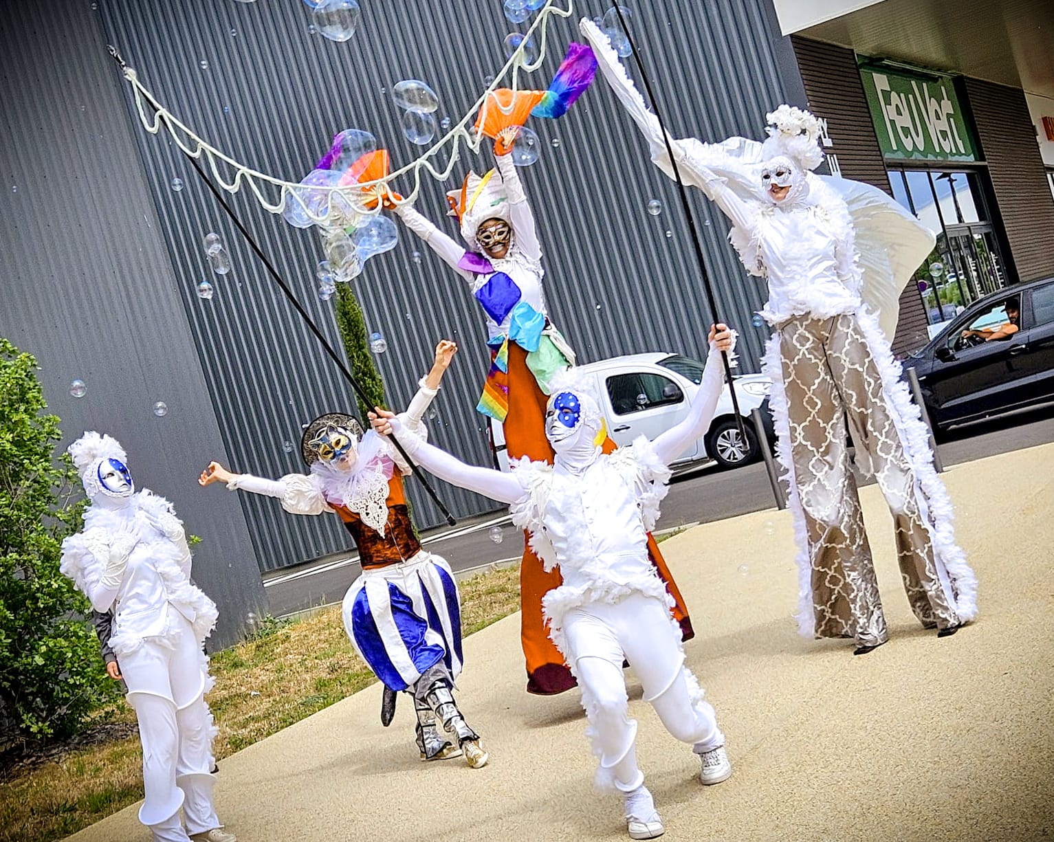 Ensemble, ils déambulent au rythme d’un char à bulles sonorisé, mené par leur espiègle Chat’crobate, pour offrir un instant suspendu entre ciel et terre.