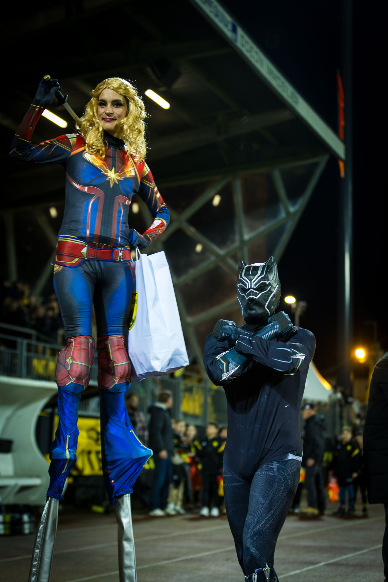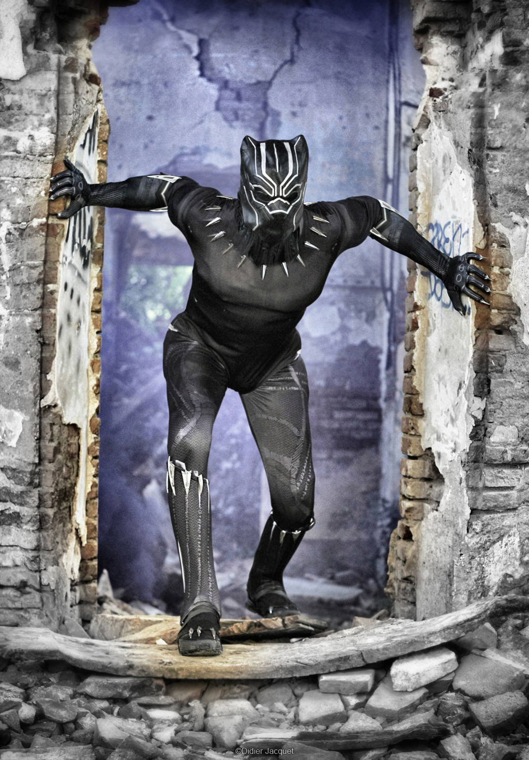 T’Challa apparaît avec une présence puissante, alternant prouesses techniques et interaction chaleureuse. Un super-héros acrobate, visuel et charismatique, parfait pour sublimer un événement cinéma, pop-culture ou familial.